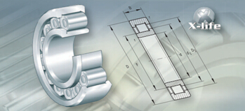 帶保持架的單列圓柱滾子軸承由內圈、外圈、圓柱滾子及保持架組件構成。外圈兩側帶有剛性擋邊或沒有擋邊,內圈帶有一個或兩個剛性擋邊或沒有擋邊。保持架防止滾子在滾動過程中相互接觸。 帶保持的圓柱滾子軸承具有良好的剛性,可以承受高的徑向載荷,并且因為帶有保持架,與滿裝設計的軸承相比,此類軸承更適用于高速場合。帶后綴E 的軸承經過優化承載能力更高,因而適于更高載荷的工況。此類軸承的一個套圈可拆分,便于安裝和拆卸。內、外圈均可緊配合。帶保持架的單列圓柱滾子軸承可用作非定位、半定位及定位軸承。